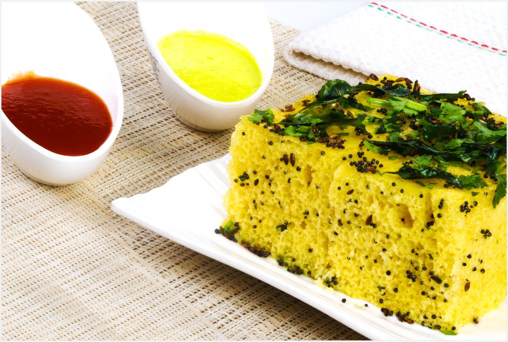 Khaman is a common food in the Gujarat made from soaked and freshly ground channa dal or channa flour (also called gram flour or besan).